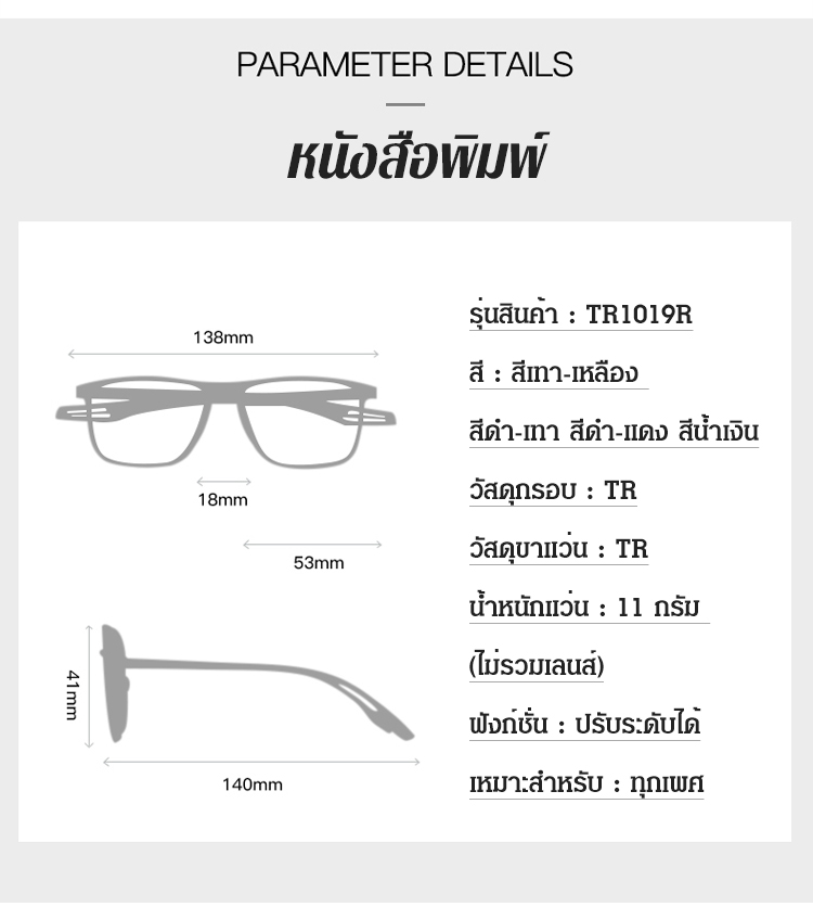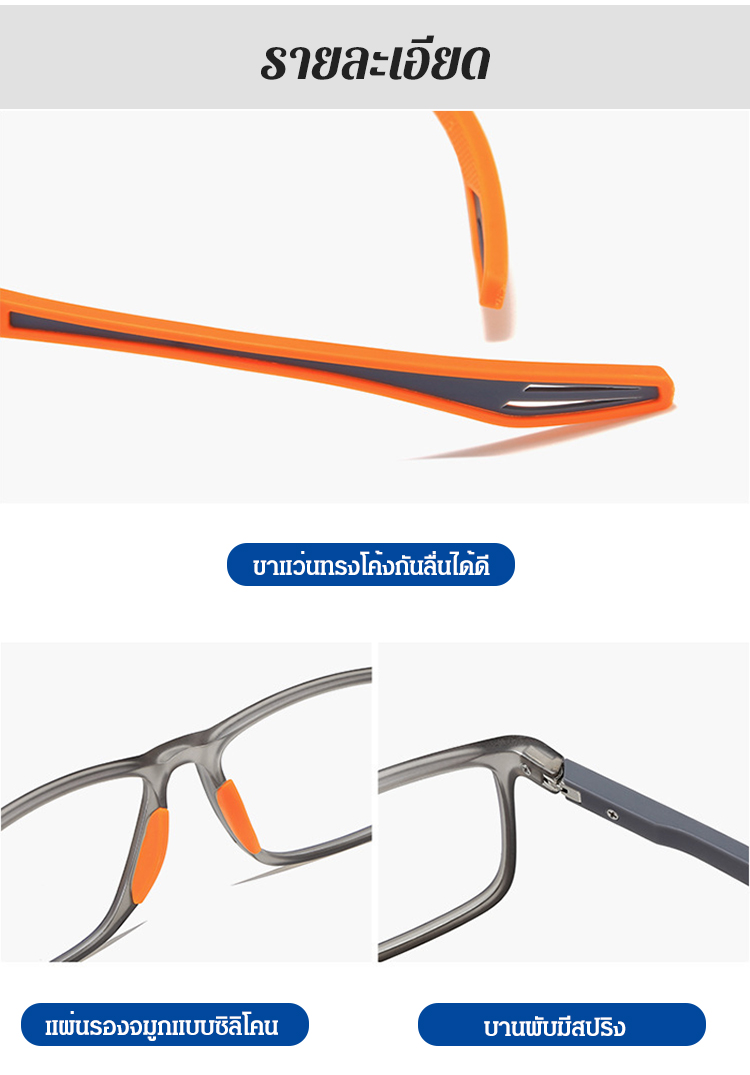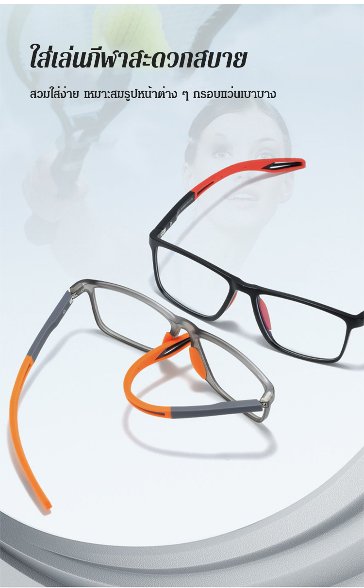 แว่นสายตายาวแฟชั่น แนวสปอร์ต - ขาแว่นซิลิโคน นุ่ม สบายผิว ยืดหยุ่นสูงไม่หลุดง่าย - เลนส์ชัดถนอมสายตา